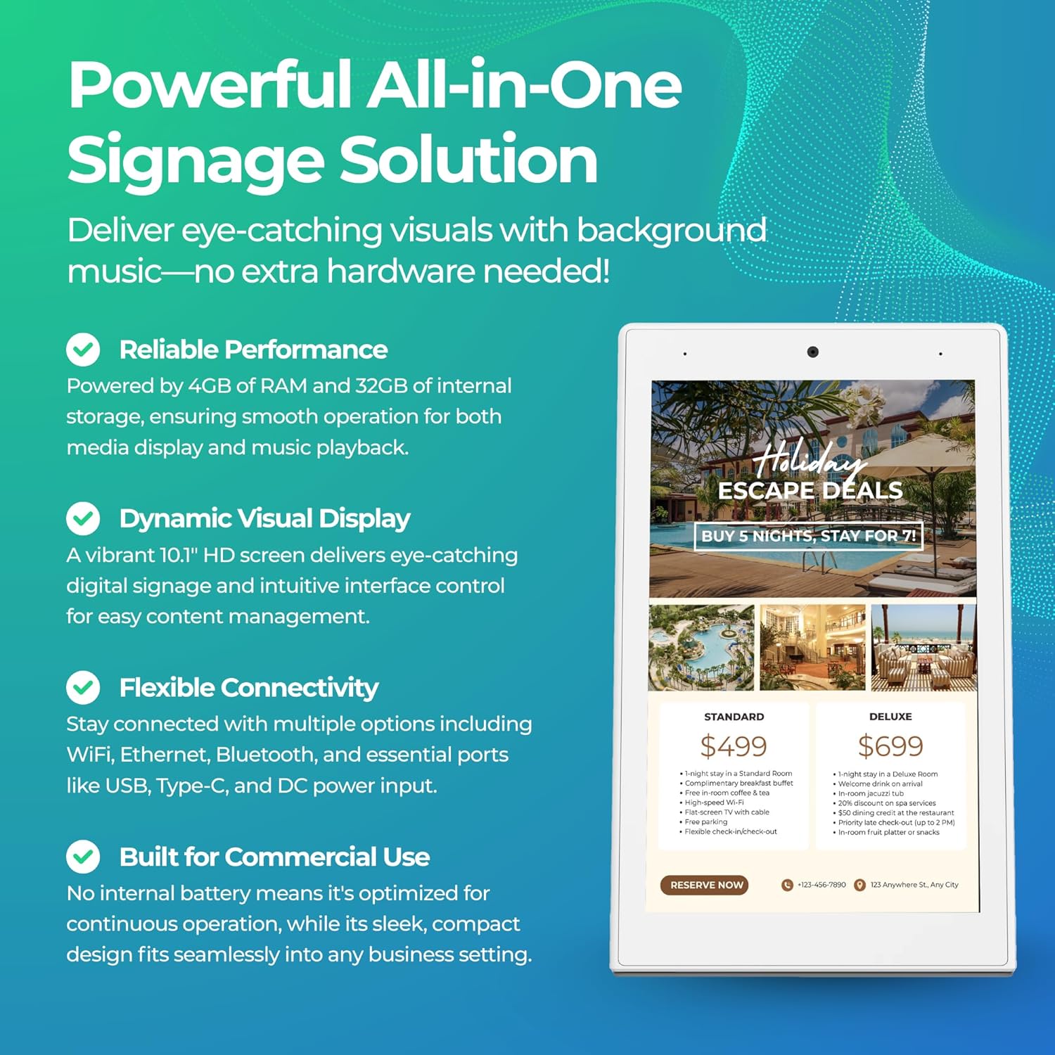 10.1” HD touchscreen display for engaging digital signage and interactive content